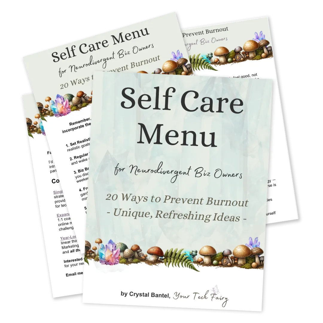 I’m a business coach, tech guide, and safe-space creator for neurodivergent entrepreneurs—especially those with ADHD, Autism, C-PTSD, or chronic conditions.